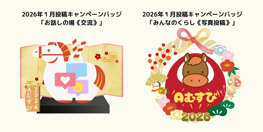 期間中に投稿してくださった方全員に、投稿先に応じた限定バッジ(Aむすび内)をプレゼント✨