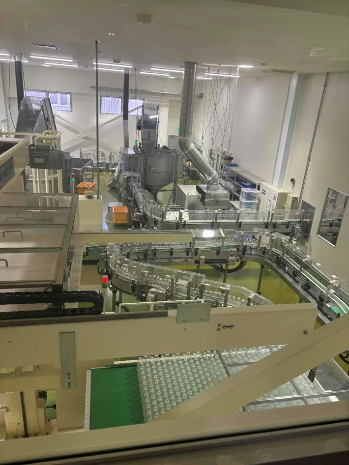 充填室でもそうですが、製造ラインの機械も、工場の床などもきれいに維持されていて、衛生管理や品質維持に努めていることがよくわかりますね✨