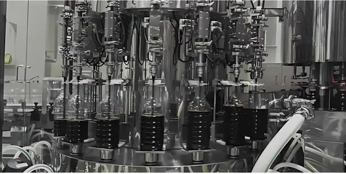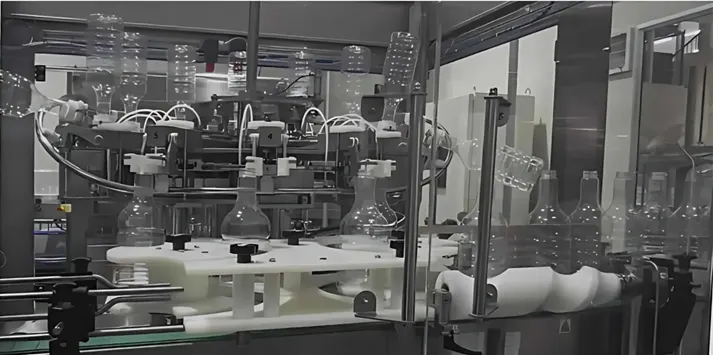 ここではボトル内部をエアー洗浄後、ボトルへ充填されます。