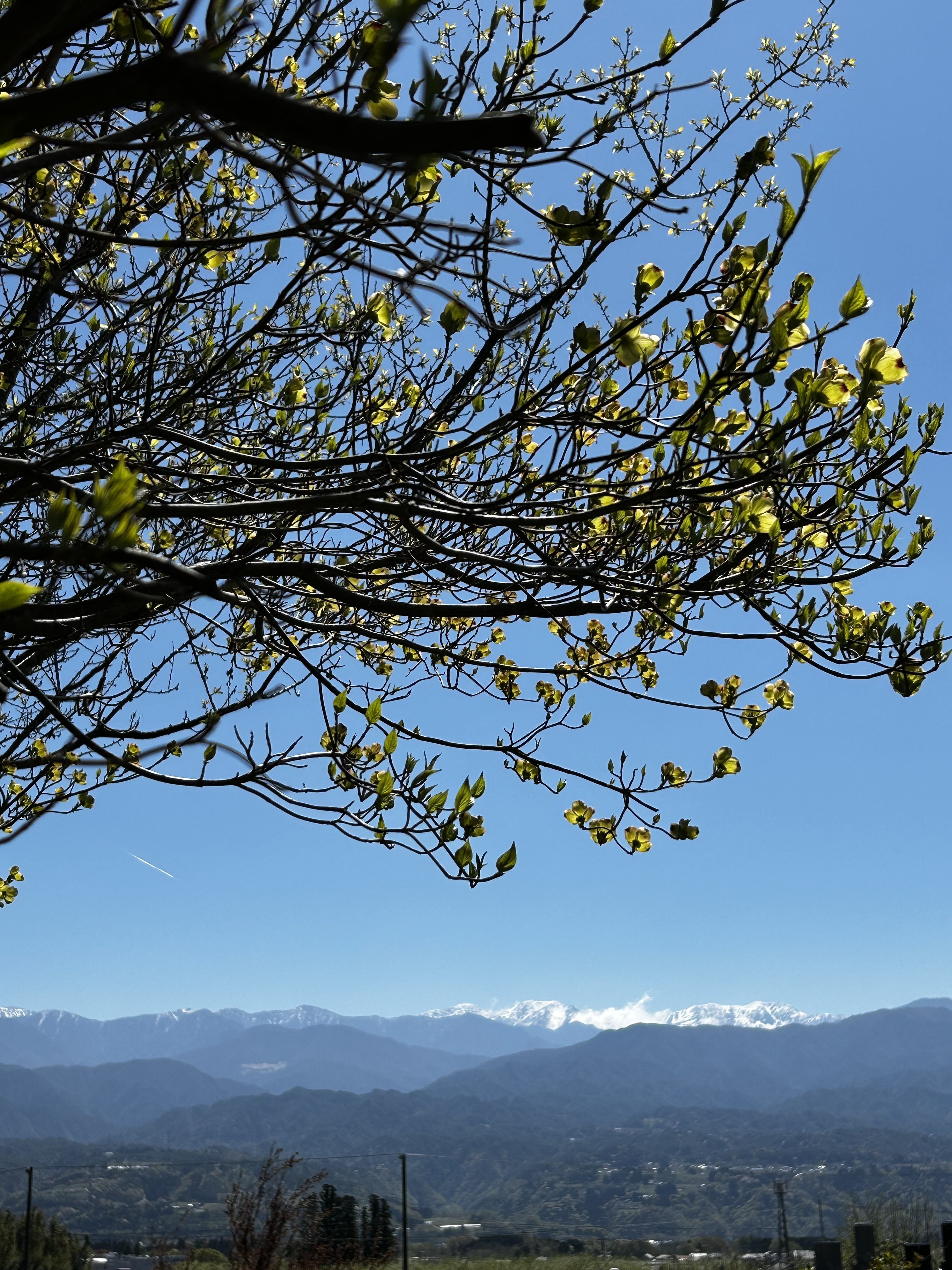 いつまで南アルプスは白い雪でおおわれているんでしょうね。雪が溶けたら、ほんとの春の到来でしょうか