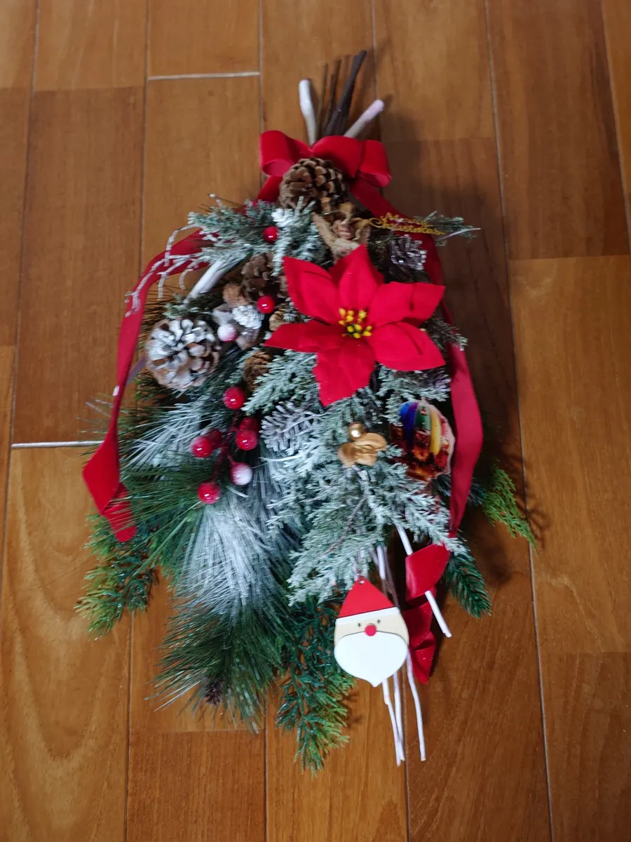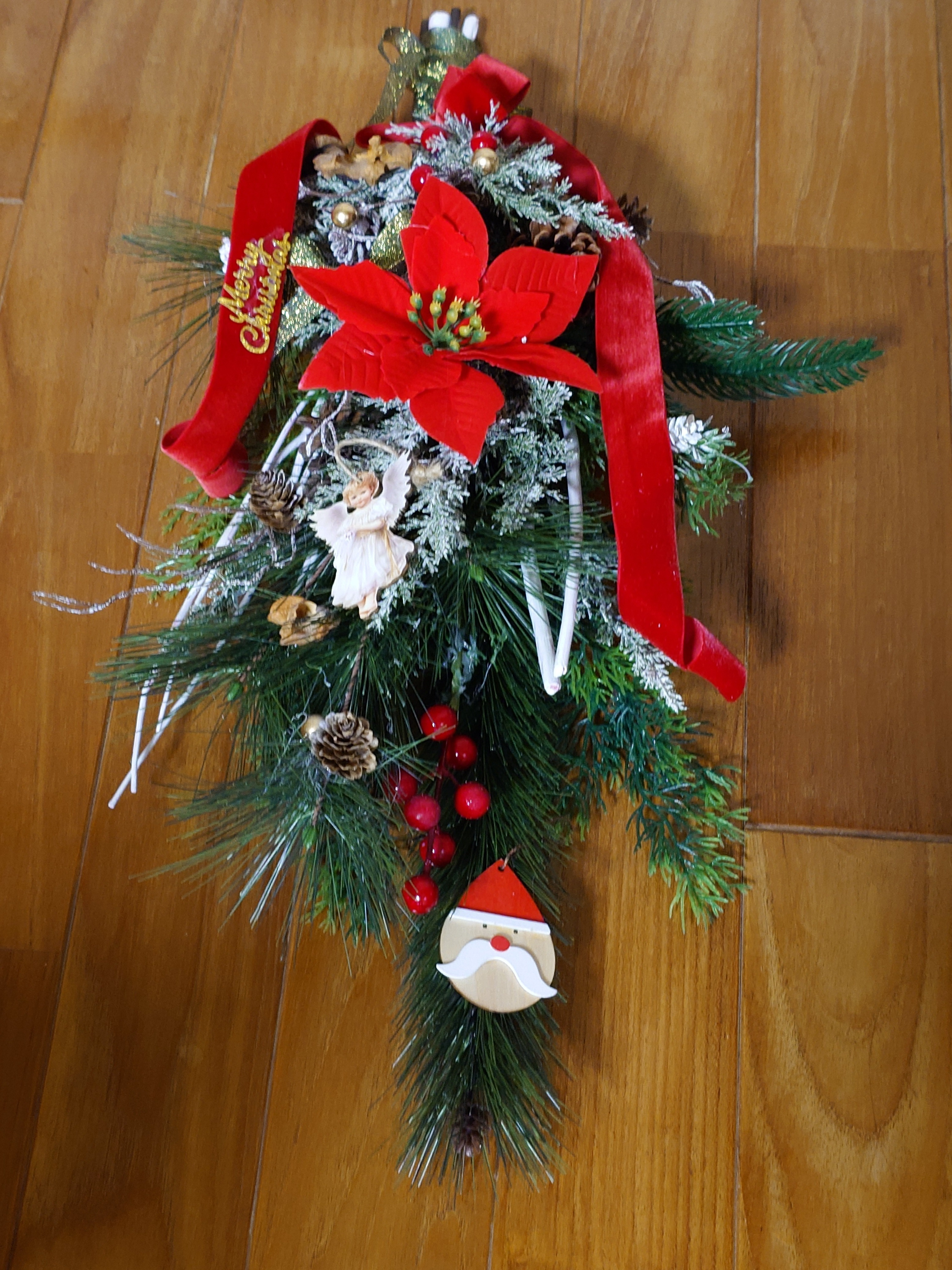 先日ミニツリーを作ったときに出た残りの檜を持って帰っているのですが、ミニスワッグを作るとか言って。まだ作っていません。参考にさせていてだきます🎄