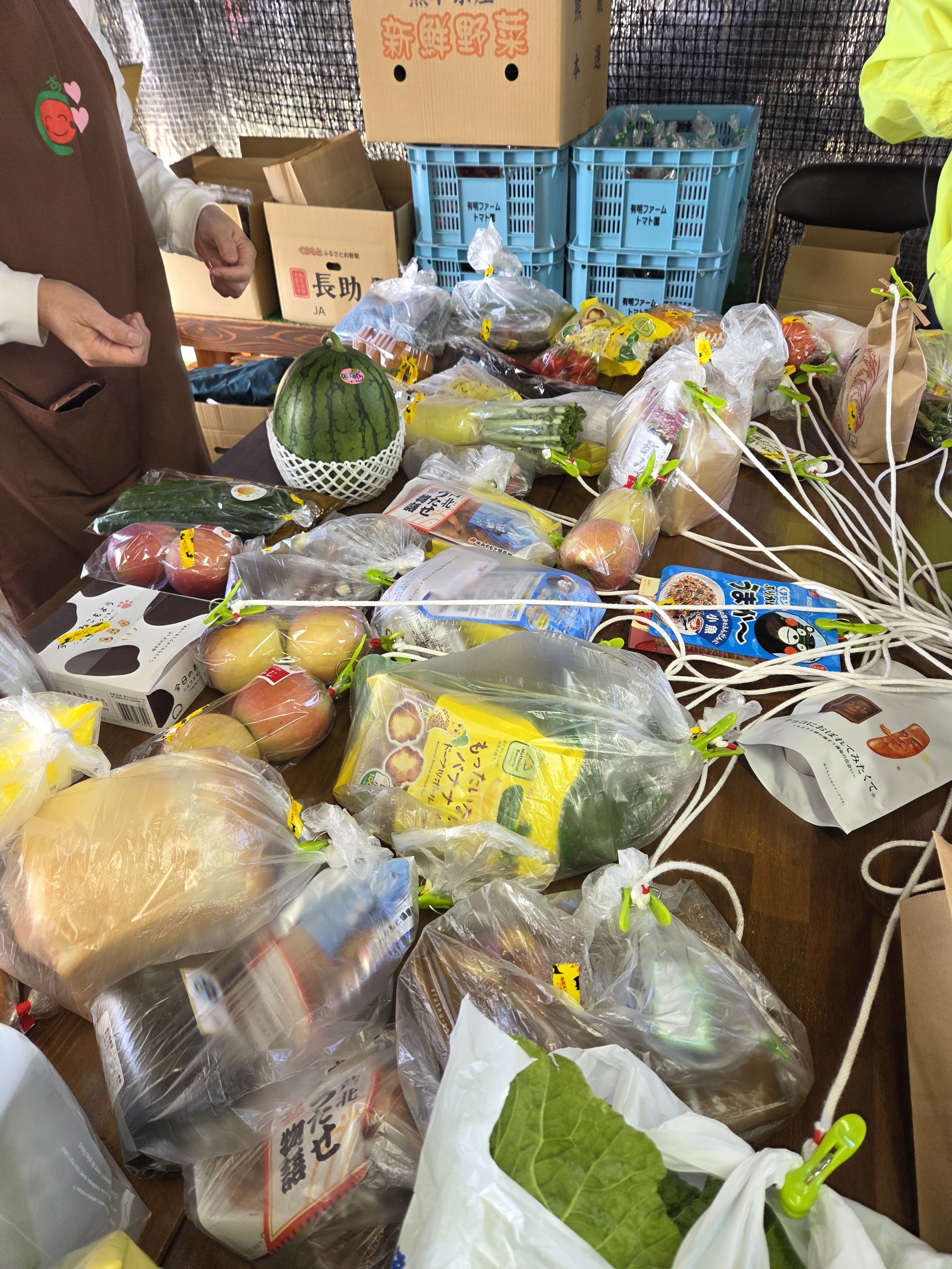 この紐の先には、出荷されている新鮮なお野菜🥒🍆🥬🍊🍅🥦🥚やスイカ🍉にメロン🍈の他に、お土産コーナーの出荷者さんがお菓子やほかの産物を提供されています。