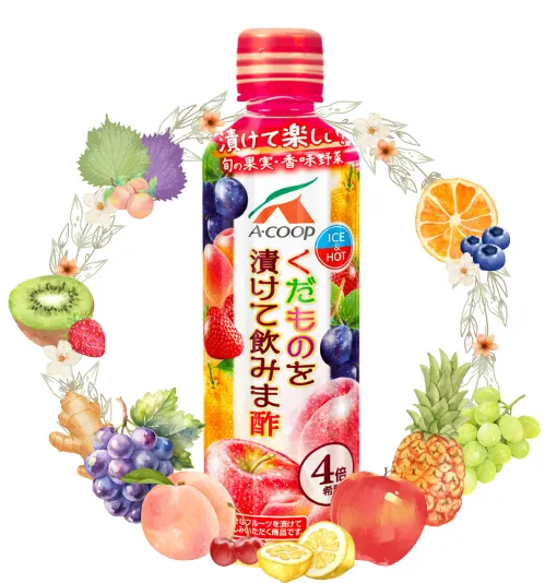 発売から約12年、長年ご愛用いただいている「エーコープくだものを漬けて飲みま酢」が、この春(4月)リニューアルします✨