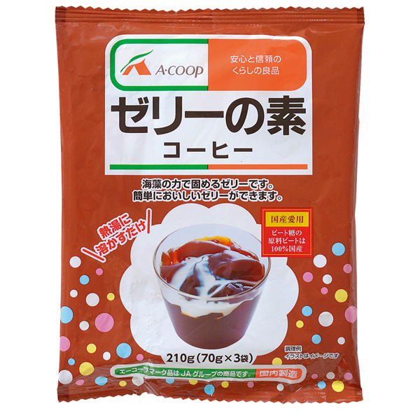 火を使わず、お湯に溶かすだけでデザートが作れる商品(お子さんでも簡単に作れます)!!《エーコープゼリーの素》です✨みなさん食べたことありますか~?「ゼリーの素」は全部で6種類ありますが、私の推しは「コーヒー」です☕💕