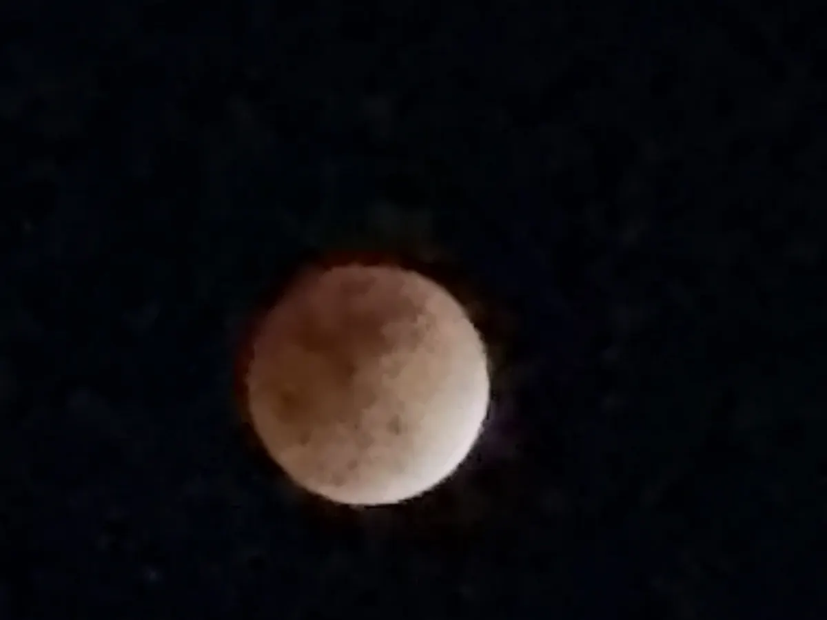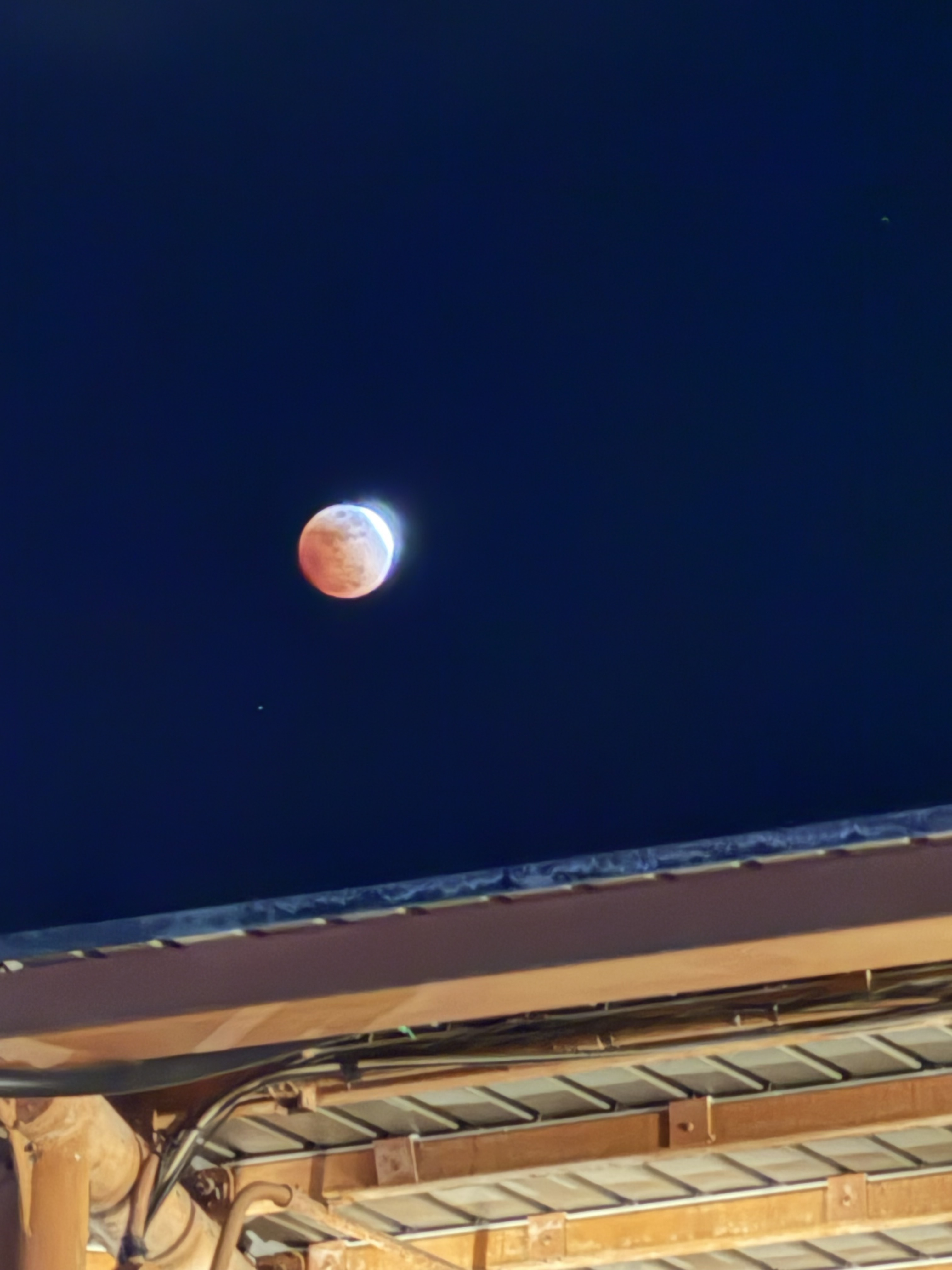 全然見えず。しかも探していたら大きな音がして、家の裏の道路で事故がありました。救急車は来てないので、大丈夫だと思いますが、縁石に乗り上げているのが見えました。月ではなく事故が見えました。😅