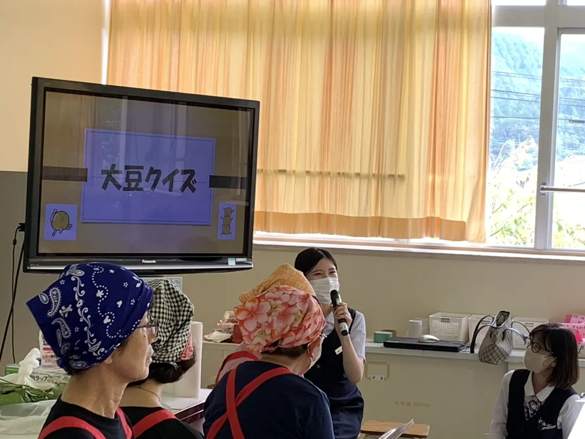 大豆がどんなに沢山の食品に生まれ変わるのかをお勉強して『へぇ〜❗️』『すごい❗️』って声が聞こえてきました。