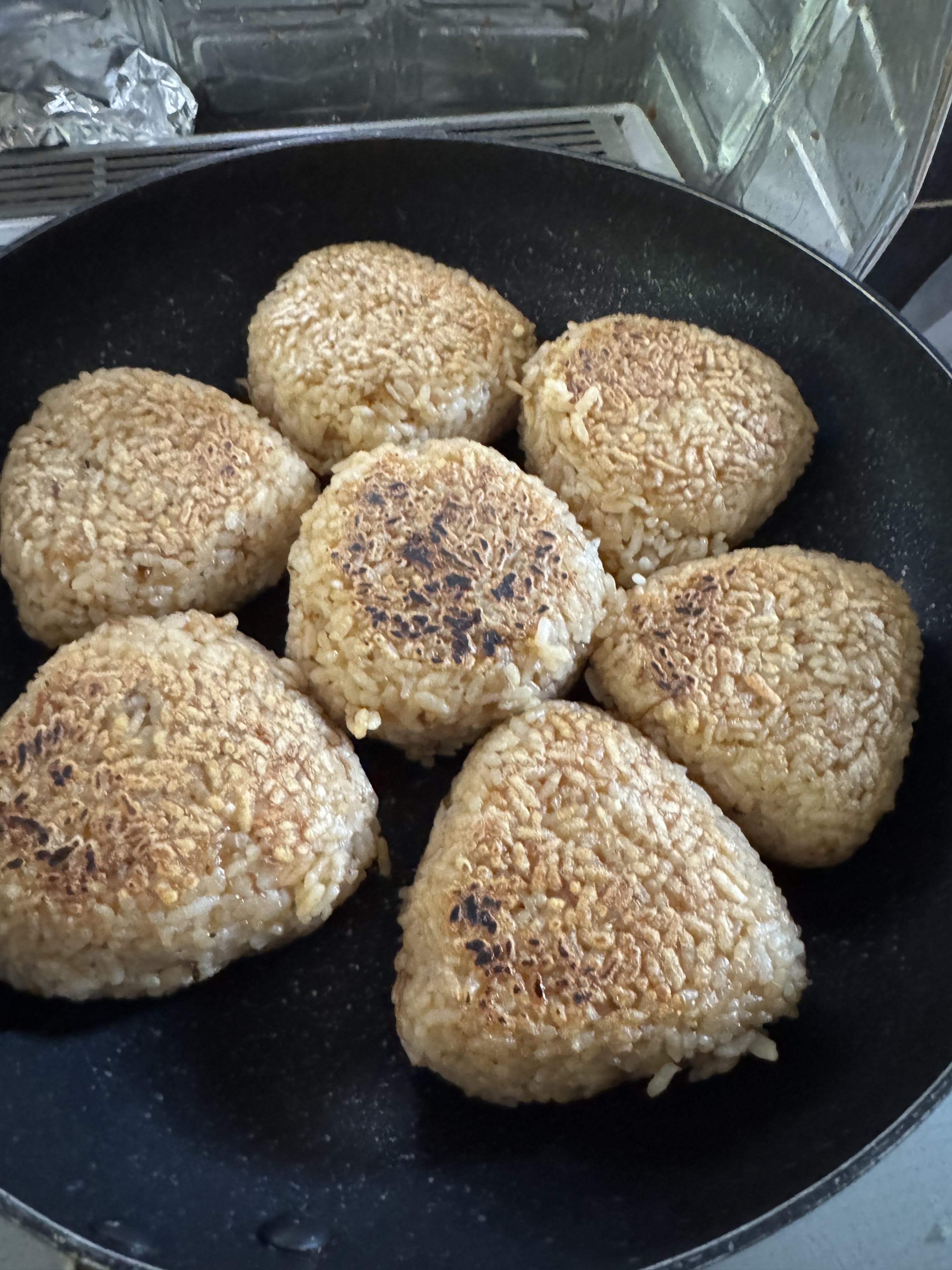 ごはんが余ったら、じゃなくても熱々ごはんでおにぎり作って焼いてもいいかな。
