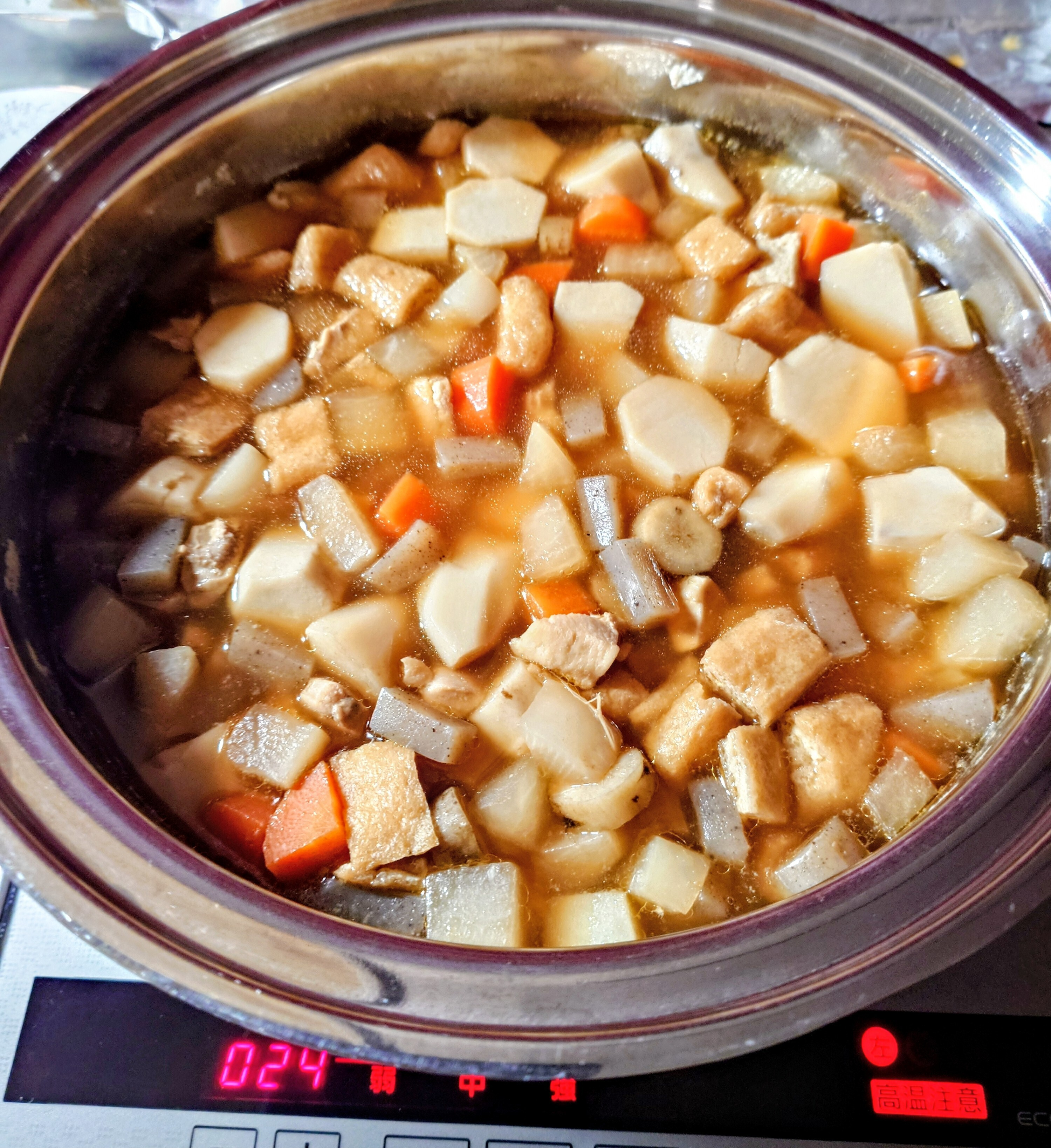 早速 ごぼう 人参🥕 里芋 大根 こんにゃく 鶏肉 揚げ をカットして 「のっぺ汁」が出来ました😺 調味料は Aコープみりんたいぷ調味料と濃口醤油のみ😄 これで 充分に美味しくできます🎶 (今回はしいたけ忘れました😅)
