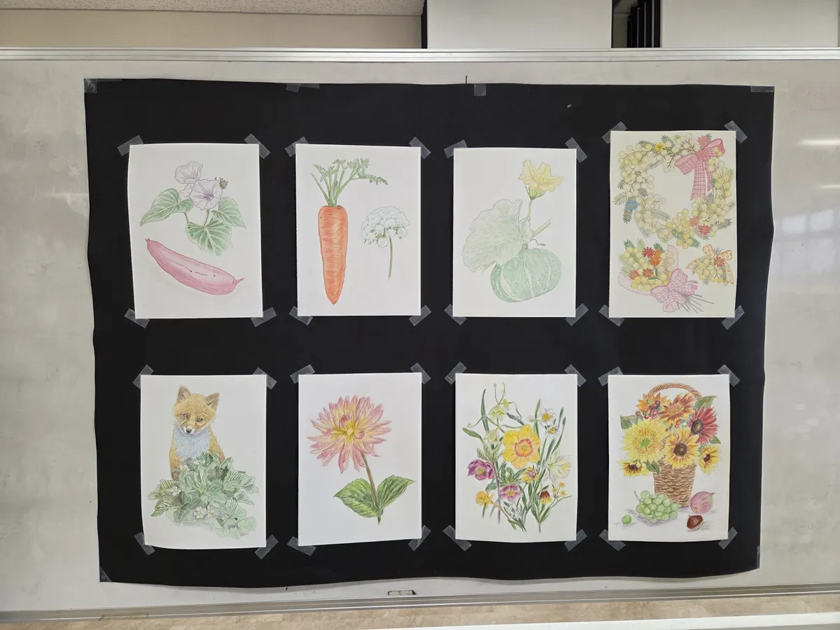 昨年一年間の作品をグループのみなさんから提出してもらって、先生の作品も展示してありました