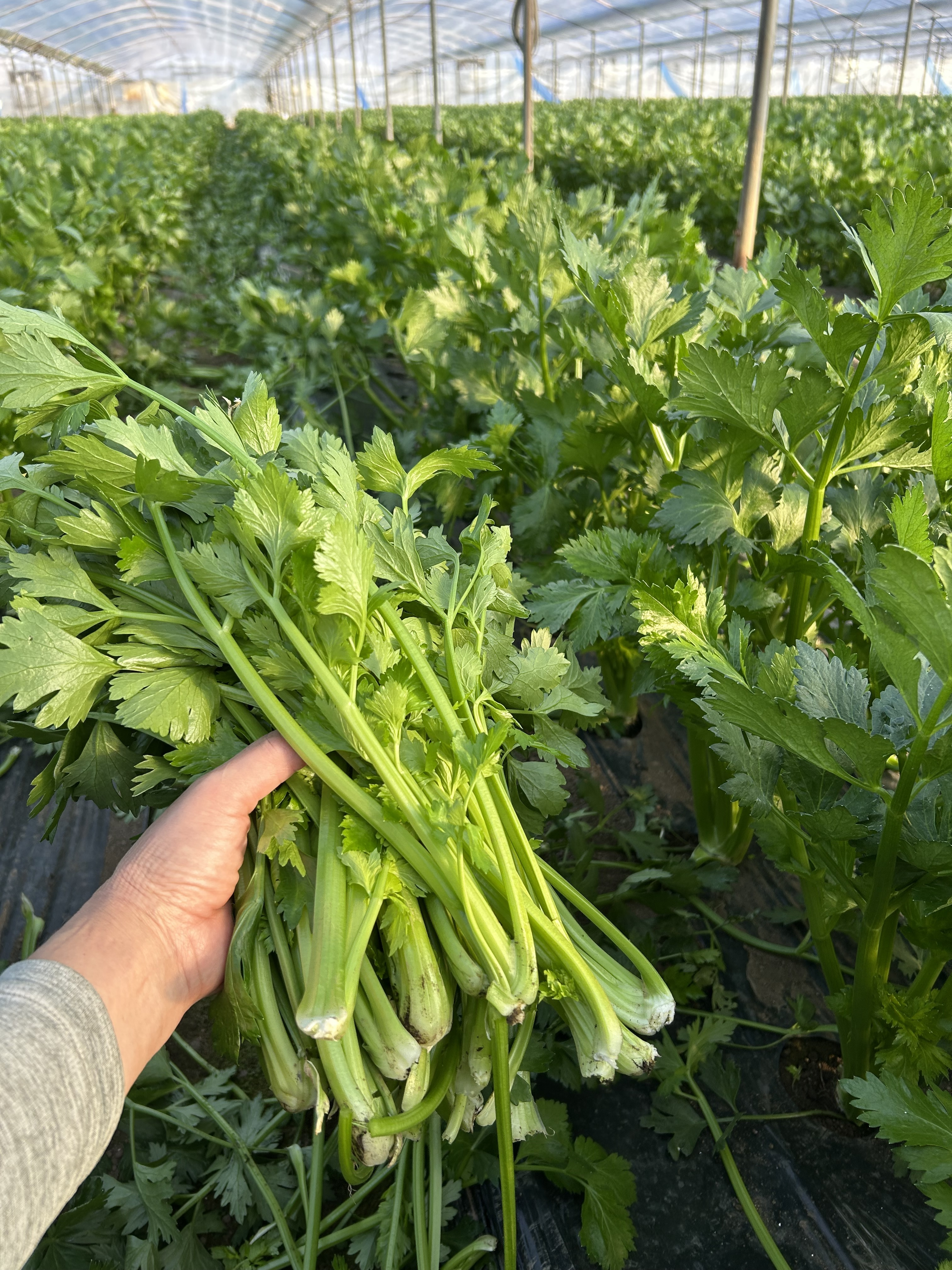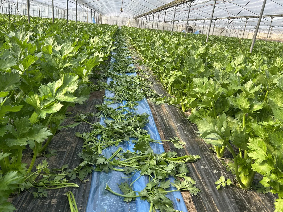 一月中旬頃、収穫予定のセロリのわき芽を取ってます。
