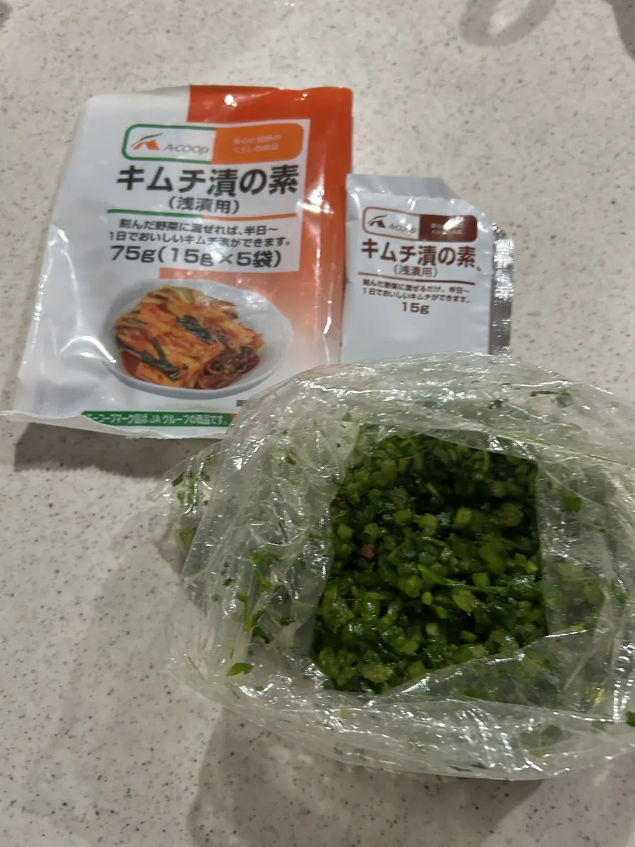 キムチの素に漬けて。