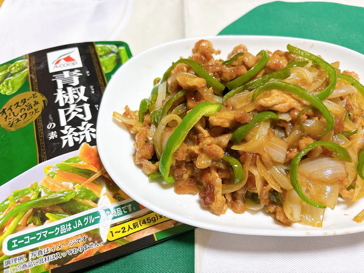 さて、今回は4月に発売予定の「エーコープ 青椒肉絲の素」を使ってお料理してみました!!