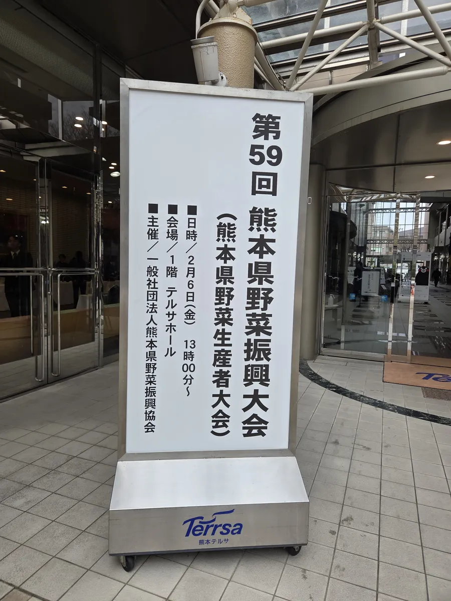 これまで熊本の野菜栽培、販売、後継者育成などに貢献された方々などを表彰する会でした。表彰された方の発表などもあり、とても有意義な時間となりました。