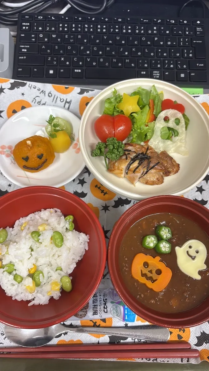 病院でハロウィン食っていうのも素敵だなって思います。お嬢さんの盛り付けのセンスがこれまた素晴らしい💕