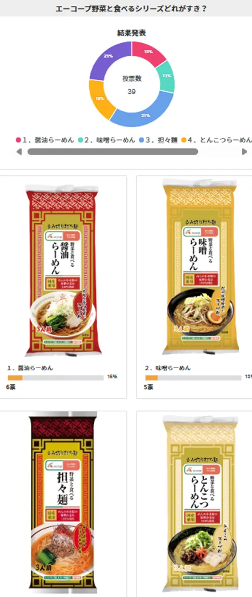 前回の「野菜と食べるシリーズどれが好き?」では12票と担々麵が1位という結果になりました!Aむすび会員さんは辛い物好きが多いのかな~🤔