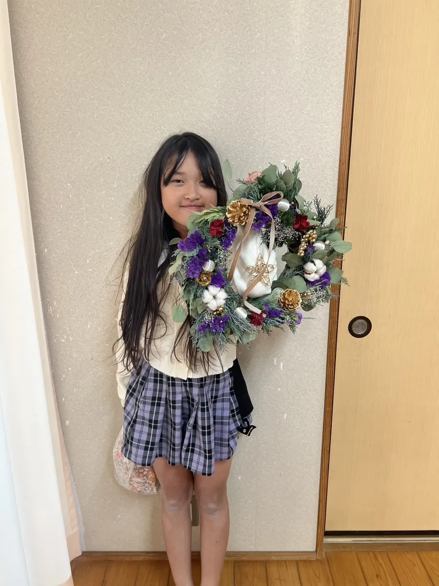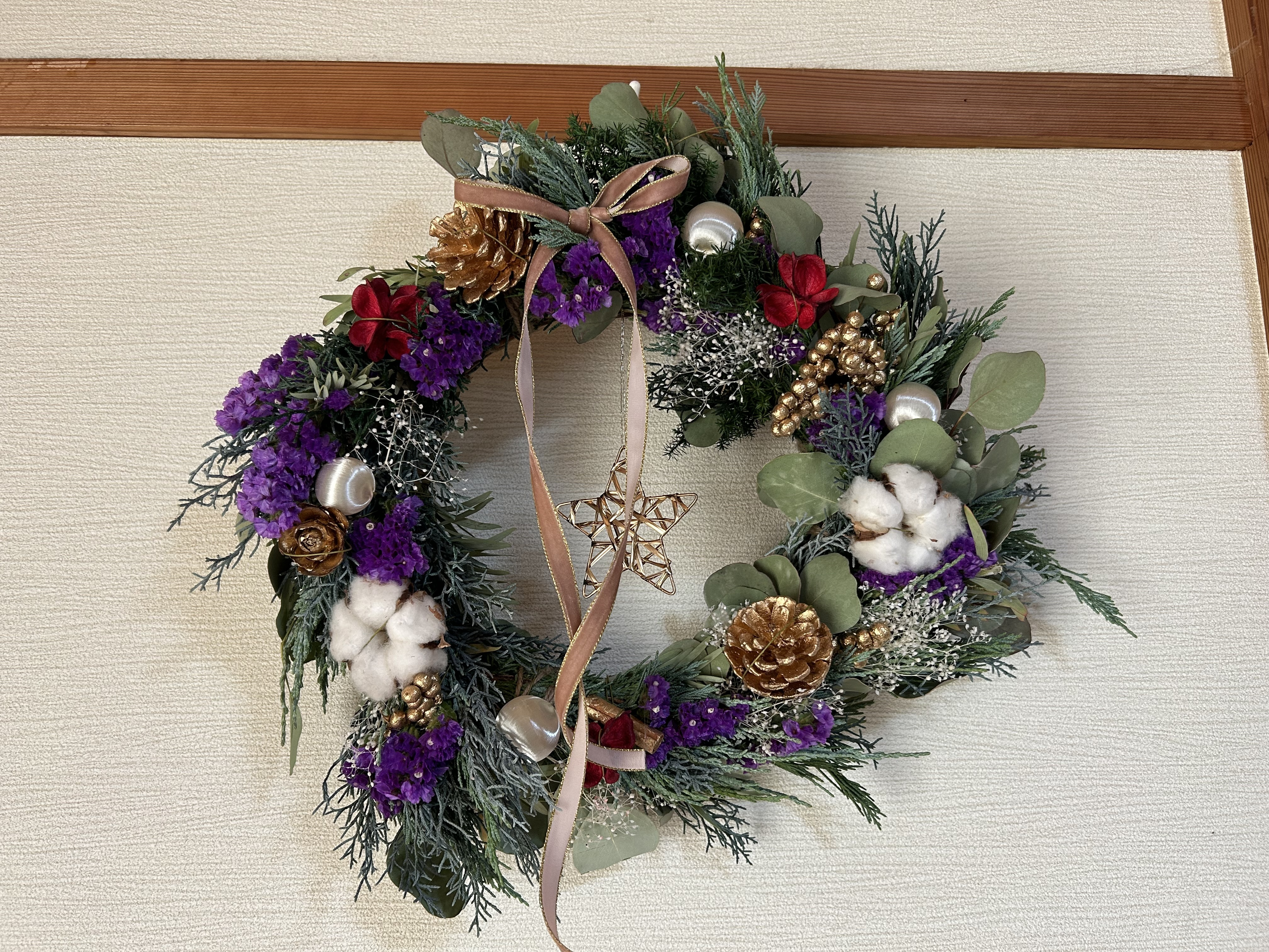 投稿を表示かわいいリースができましたね!飾りもたくさん付いていて華やかですね。