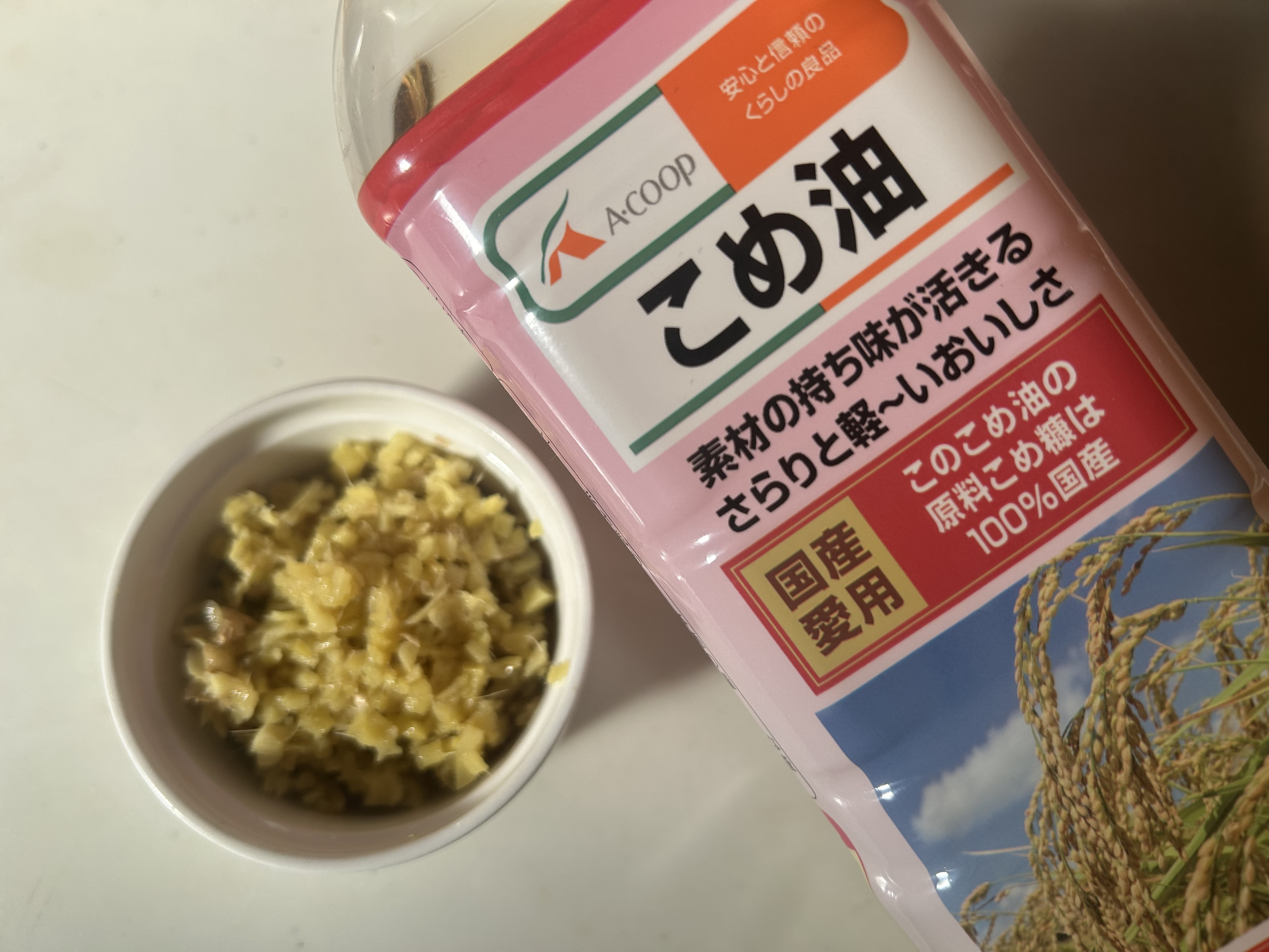 レンチンしたり、こめ油とあえることで、マイルドな味わいになるので、生姜が苦手な方も、食べやすいですよ〜