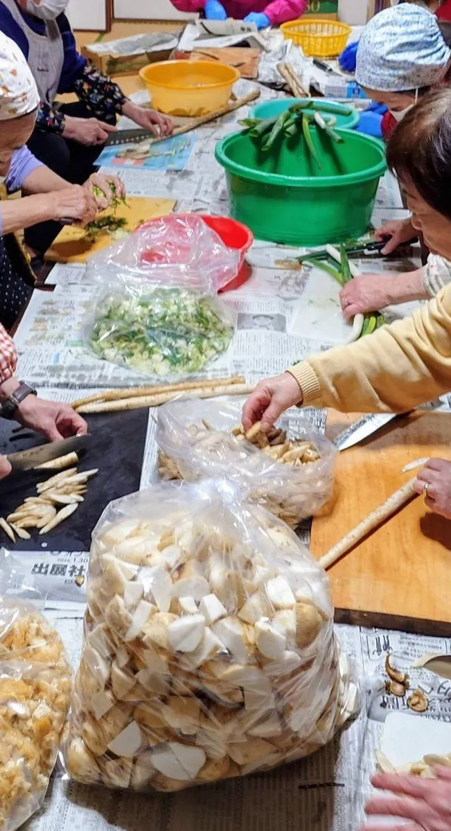 前夜の だんご汁の材料切り!皆さん サッサかとすご~い💓 お世話係さんの下準備も完ぺき🥰🥰 主婦の力って素晴しい💓(皆さん専業主婦では ありません☺️)