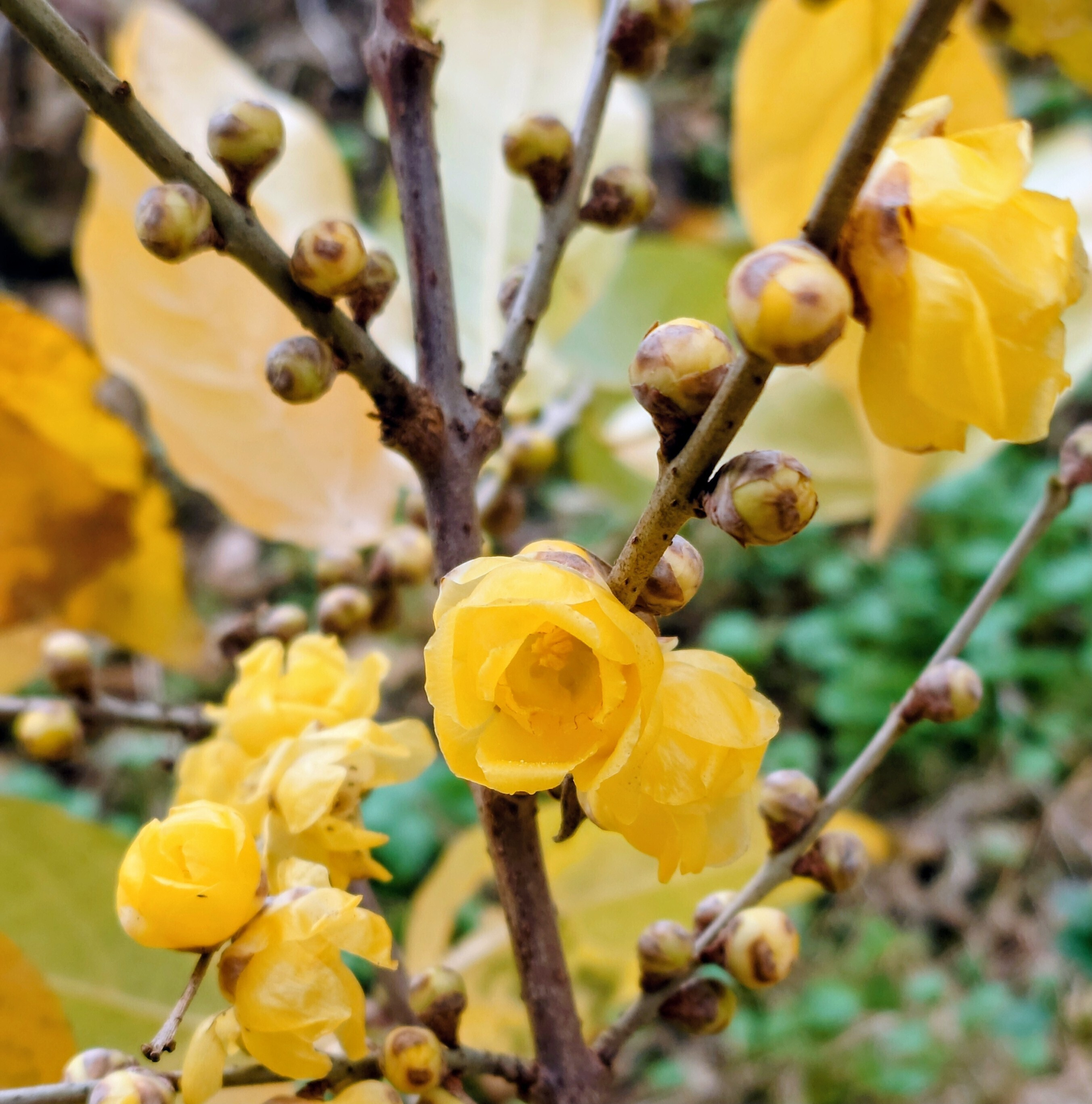 投稿を表示うちのお向かいのお宅のロウバイもきれいに黄葉しています。