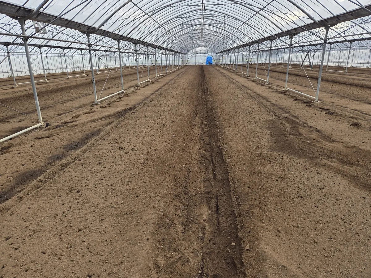 畑をトラクター🚜で耕し、溝を作り、灌水チューブと言われるホースを伸ばします。