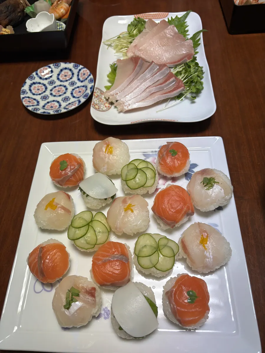 朝からお刺身も切って、手まり寿司も作ったんだけどね。よく食べる91歳なんですよ〜