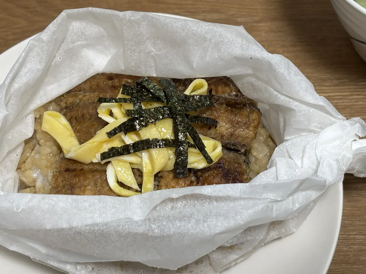冷蔵庫でカチコチになってたうなぎも蒸すとふっくらして美味しい😋