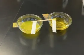 左側:一般的な着色料(少し濃く着色しています)