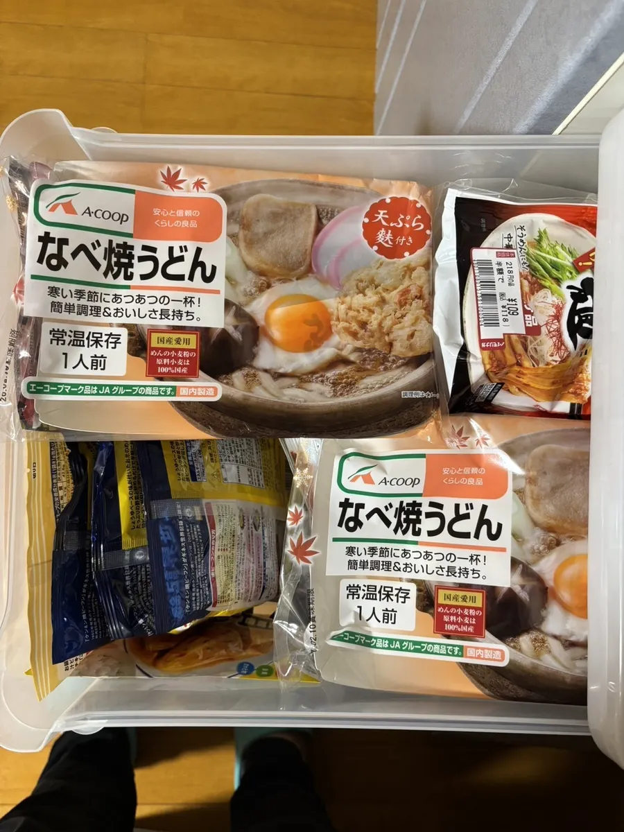 私がおひとり様で食べようと買っておいたなべ焼きうどんとか