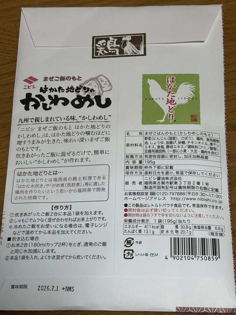 「はかた地どりのかしわめし」