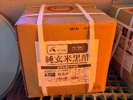 「工場内でエーコープ純玄米黒酢を発見👀」