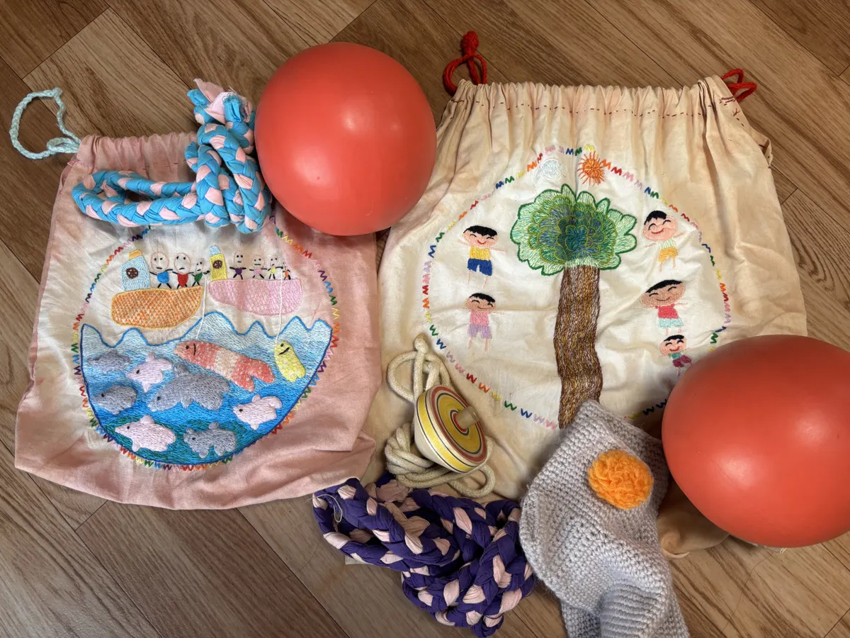ちなみに娘たちが通った保育園は、年長さんになるとこんな「まり袋」を作ります。