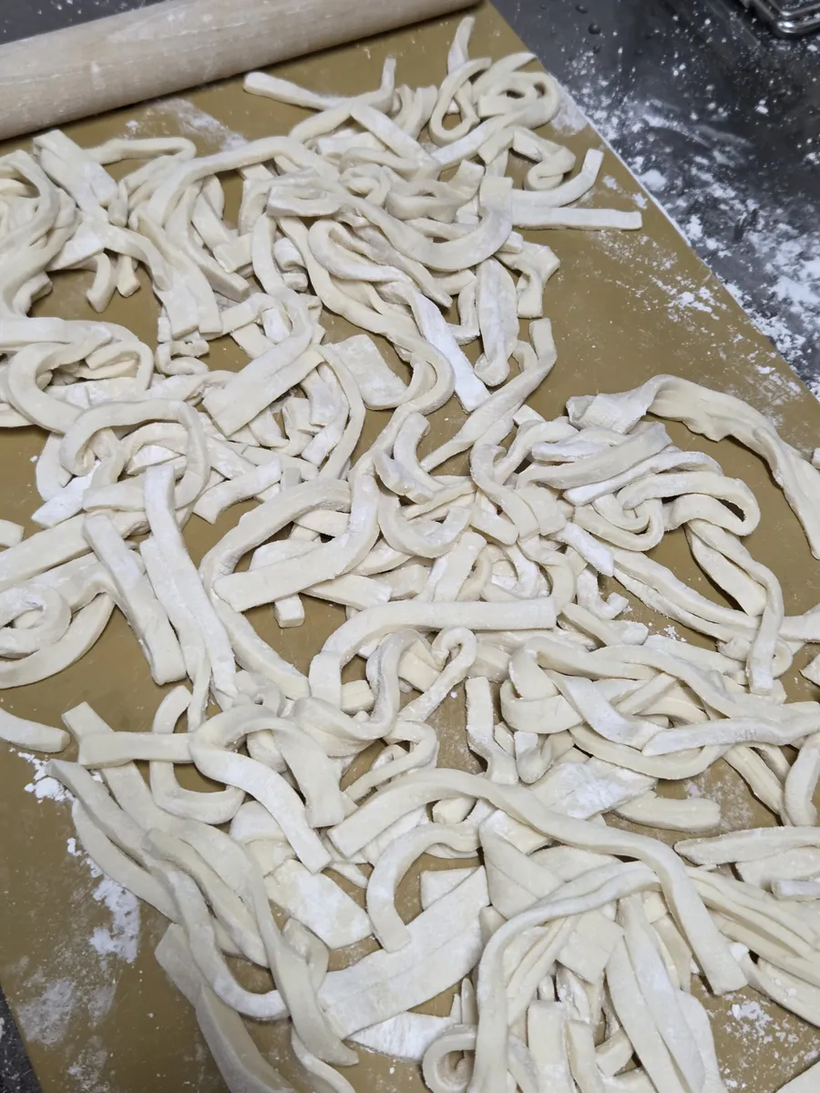 小麦粉をこねて、のばして、切って、