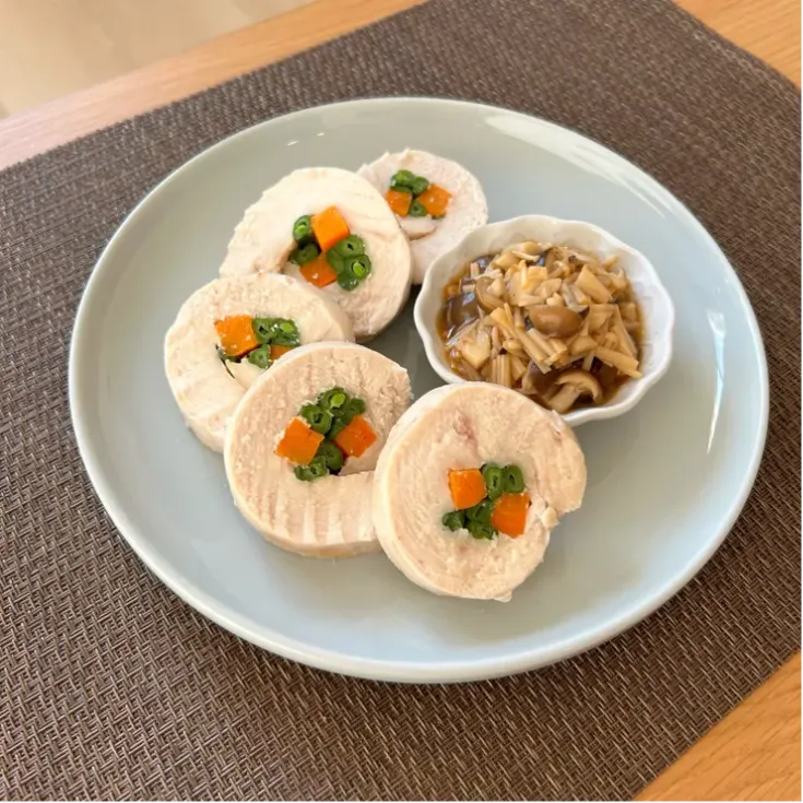 にんじんも入っていて、彩りがよく、きのこのタレも秋だなという感じで、食欲の秋にはぴったりの1品ですね🍂
