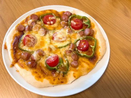 ケチャップにチューブのニンニクを混ぜて塗ると、いい感じのピザソースになりますよ😊