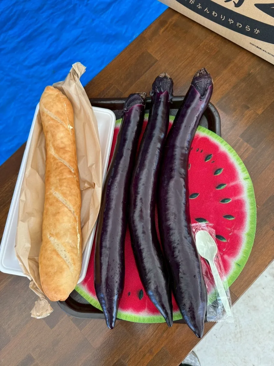 道の駅の周年祭で女性部が千本引きと大長茄子バーガーをしたと投稿あってましたね😅