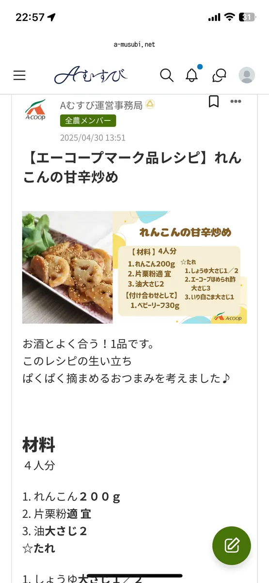 トップ > みんなのくらし《写真投稿》 > 使ってみた! > レンコンの甘辛炒め たこたこ 2025/11/01 22:59 レンコンの甘辛炒め Aむすび運営事務局がレシピ図書館で載せてるレシピで作ってみた〜 いいね 共有する 共有する X facebook LINE リンクをコピー コメントする 1 件の返信 (新着順) ミュートしたユーザーの投稿です。 投稿を表示 りんごばーば 2025/11/02 22:38 簡単にできるから いいですね。 いいね 返信する