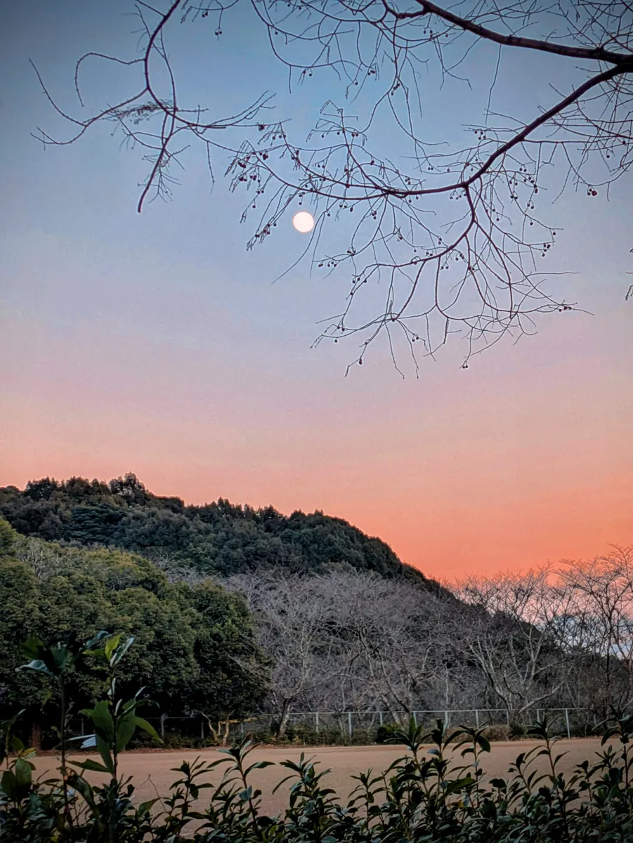 夕焼けの写真、絵画のよう。綺麗✨満月は明日かな?