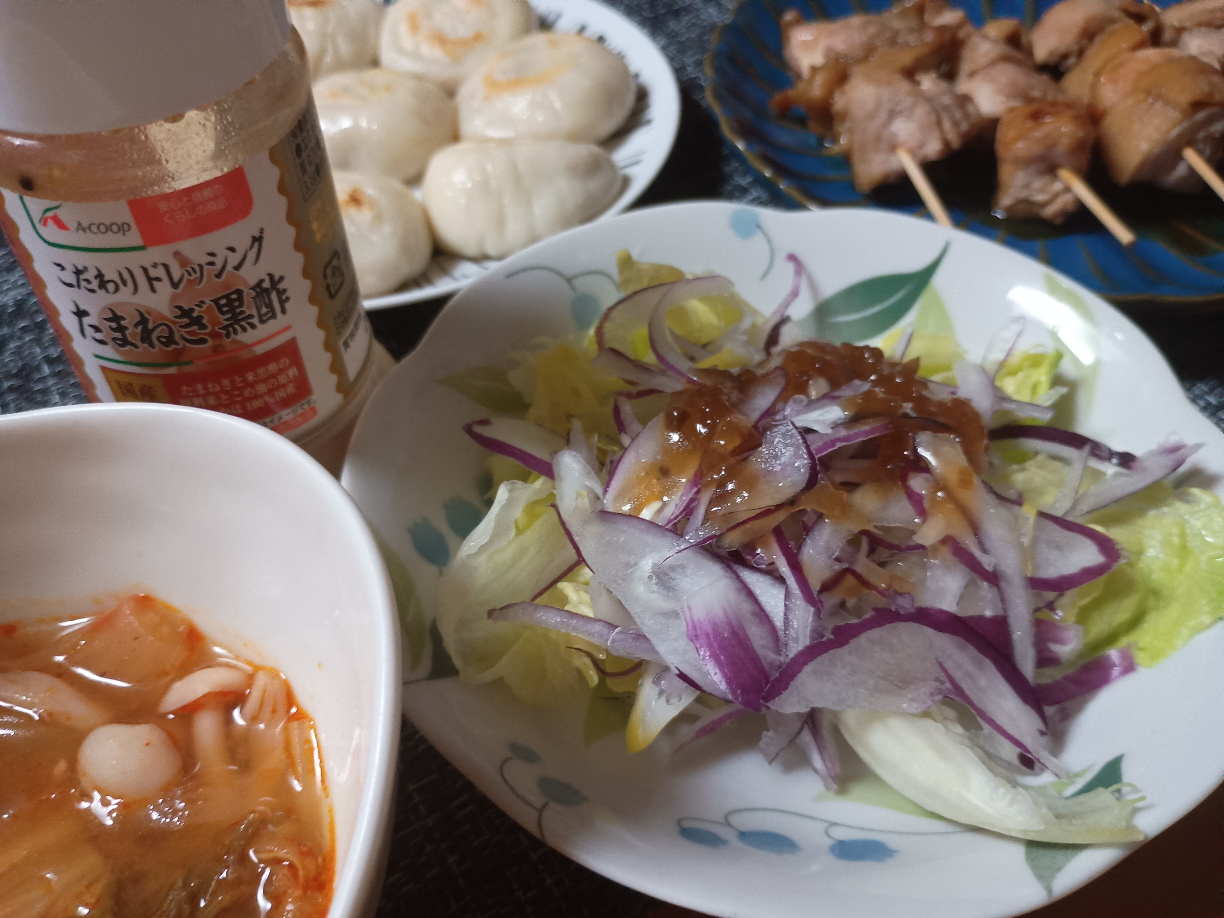 ドレッシングは玉ねぎ黒酢が好きですが、家族がマヨネーズが好きで、サラダにはほとんどマヨネーズかけて食べます。