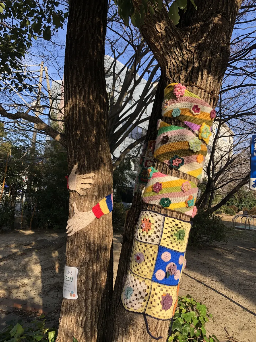 かわいいし、毛糸を寄付して編んで作ってたり、とても良い活動?アートですね~