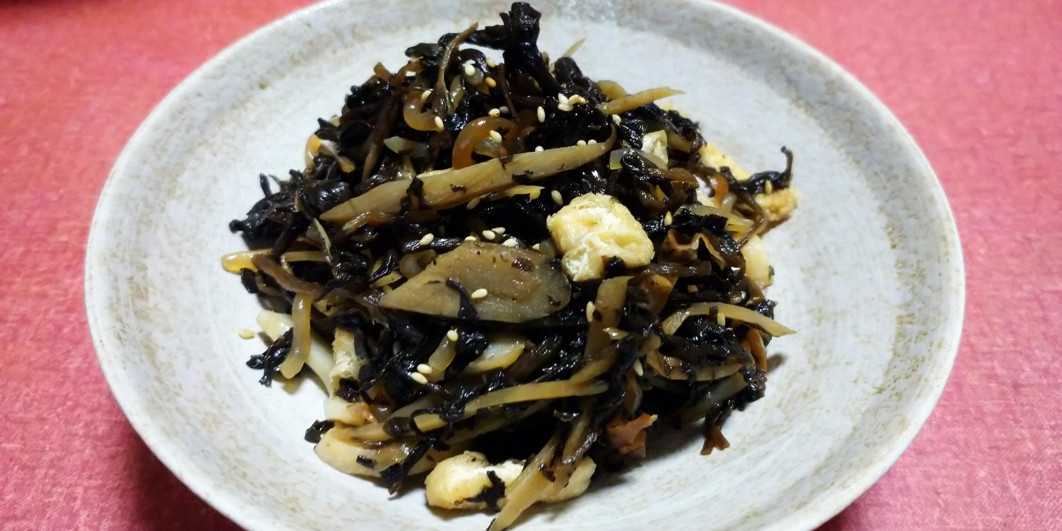(ひょう干し戻したもの、ささがきゴボウ、糸こん、ちくわ、油揚げ、ゴマを入れて作りました)