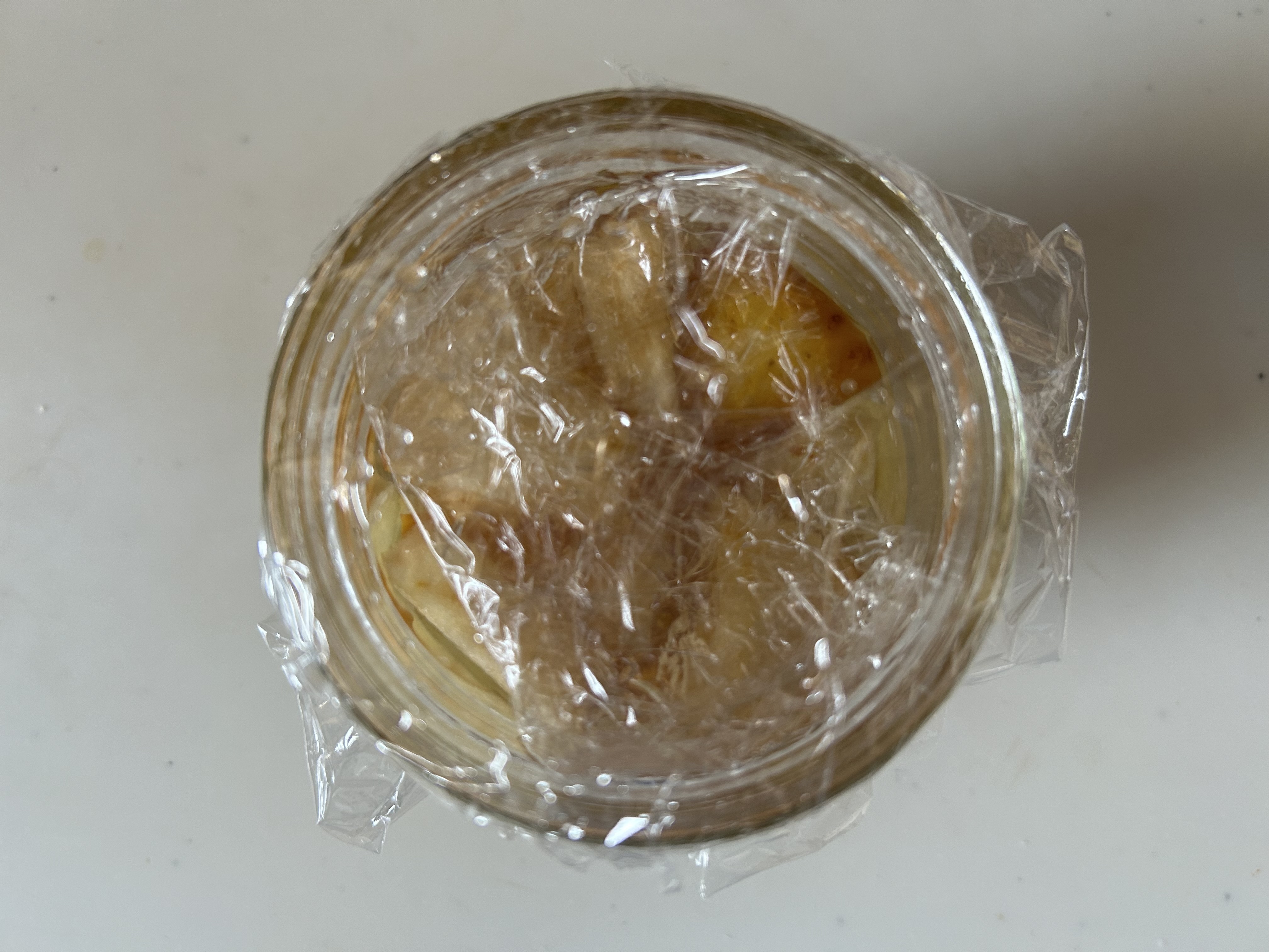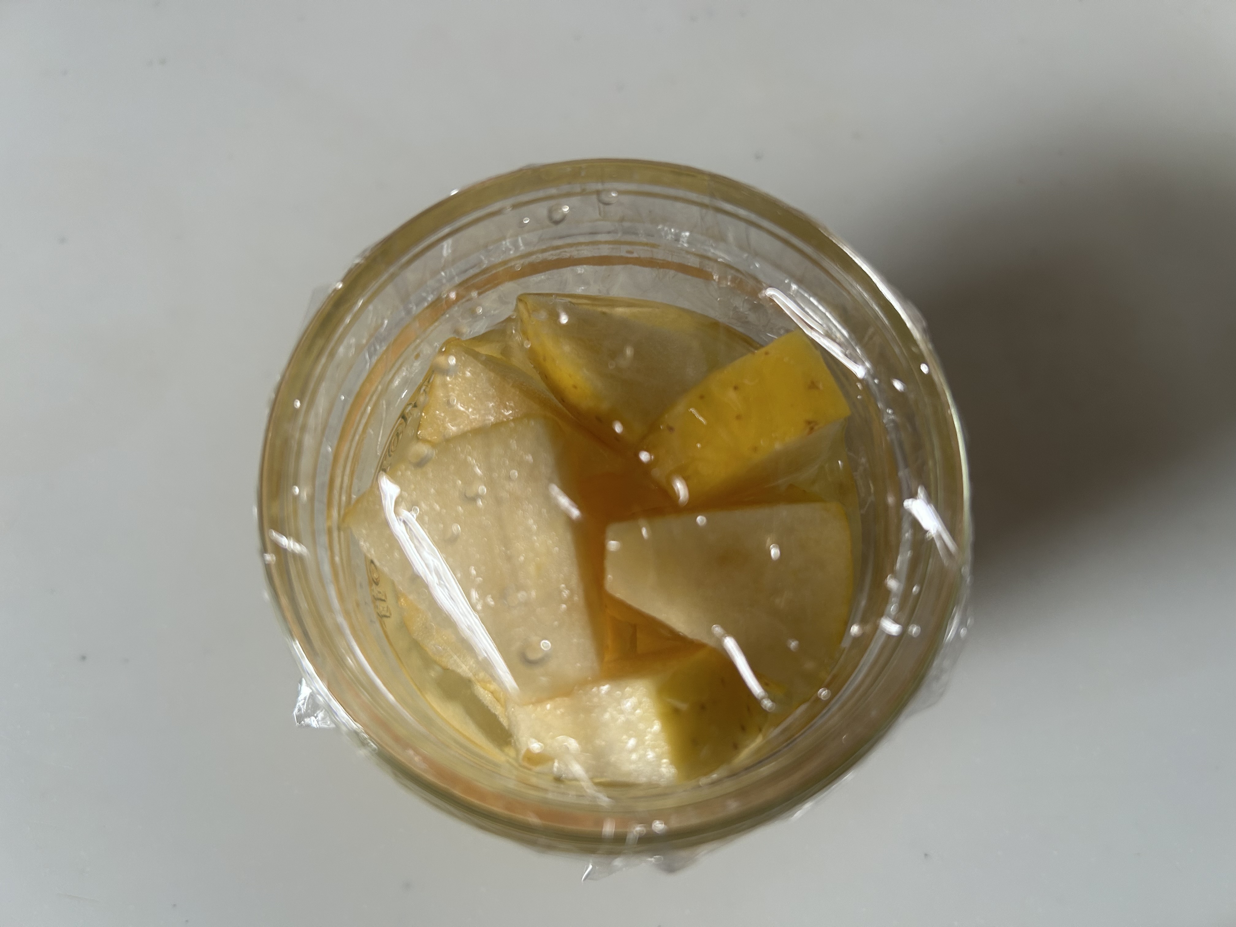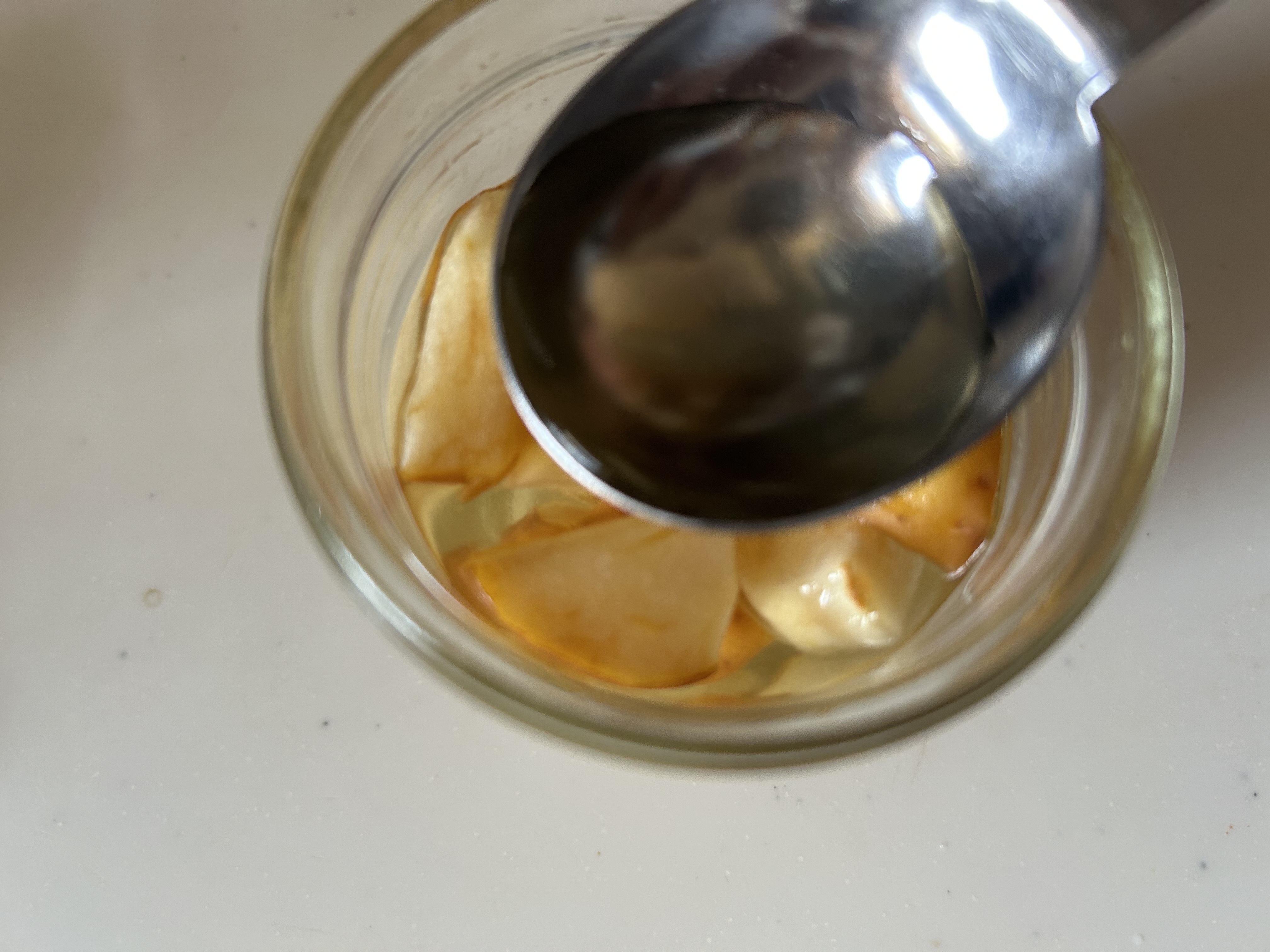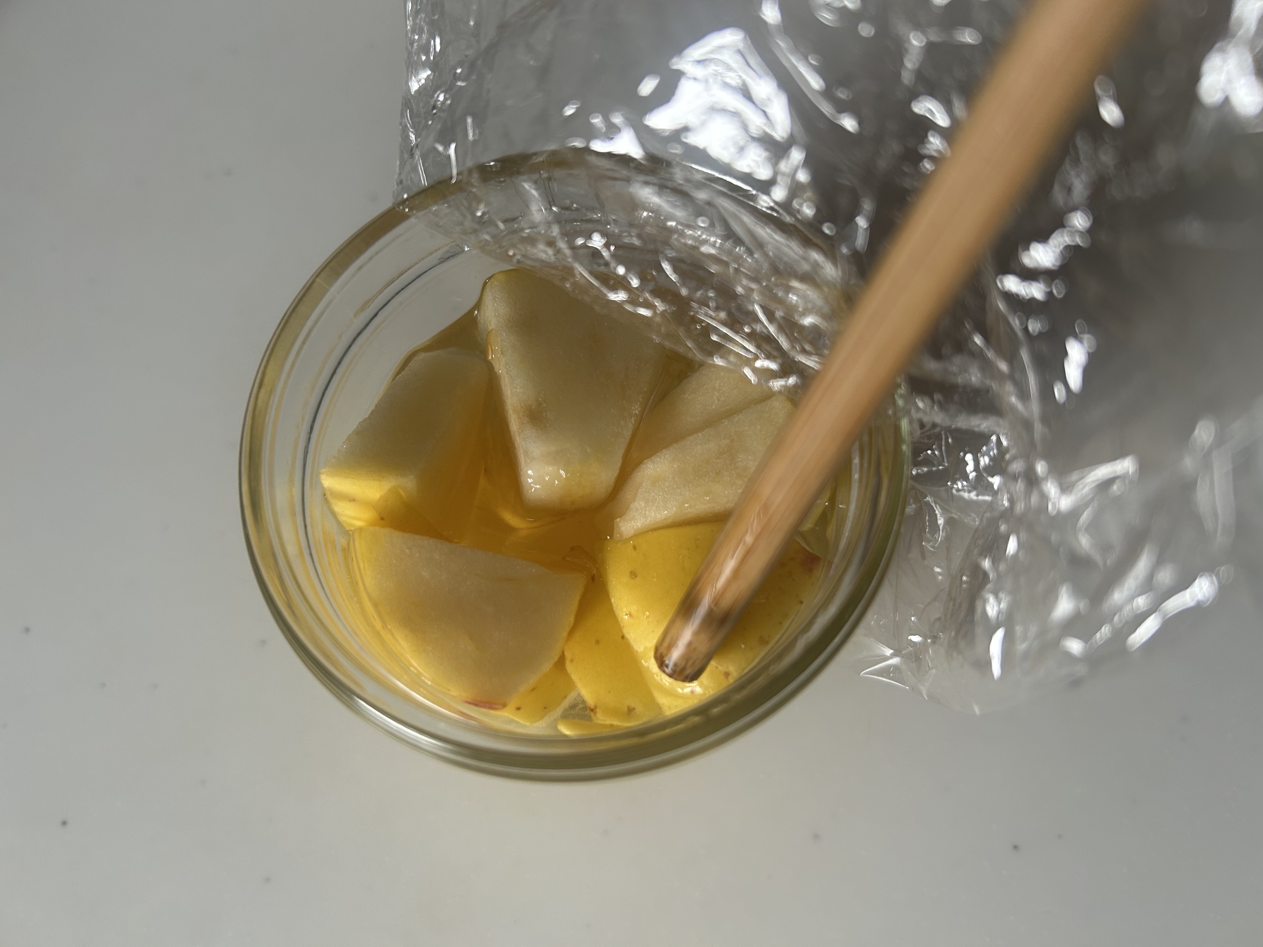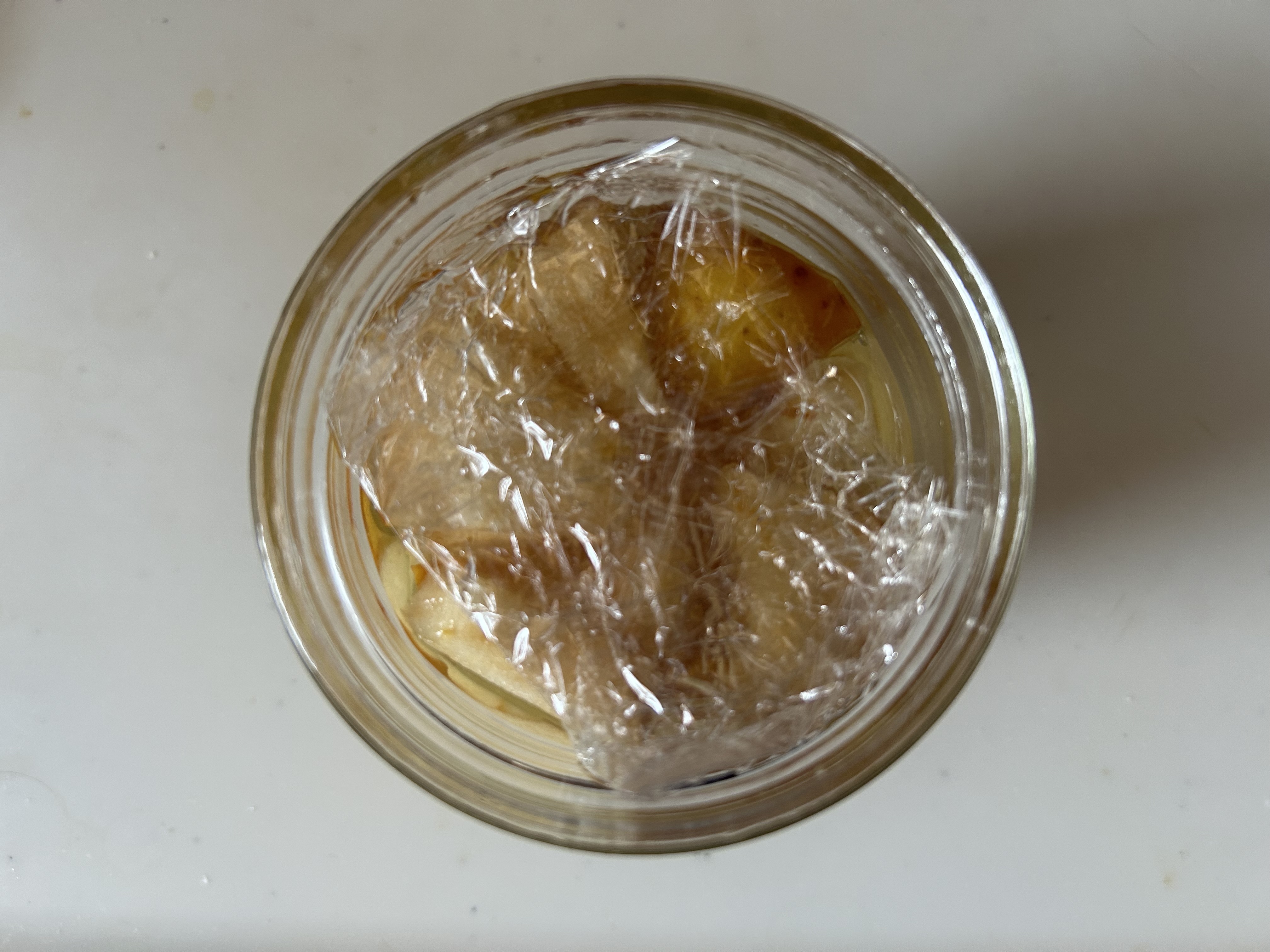 漬け始めは、りんごが酢にすべて浸ってなかったのですが…