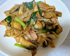 白茄子炒め 【材料(分量付き)】白茄子 2つ玉ねぎ 1つ小松菜 50g豚もも肉 120g油 適量 塩こうじパウダー12g国産野