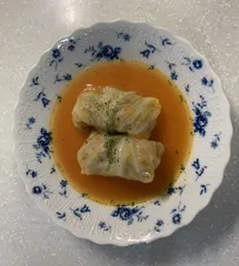 ヘルシーロールキャベツ 【材料 3人分】キャベツ(6枚)鶏ひき肉(200g)塩こうじパウダー(1袋)玉ねぎ(中1個)食油(少量) 水(800cc)コンソメキューブ(2個)トマトケチャップ(適量) 【作り方】①ひき肉に塩こうじパウダーを振り入れ、よく混ぜてなじませる。②玉ねぎはみじん切りにし、少量の油でし