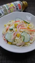 スパゲッティーサラダ ほめられ酢、マヨネーズ、塩コショウでスパゲッティーサラダを作りました。美味しい~😋