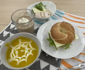 ハロウィン🎃 【材料(分量付き)】♦パンプキンスープかぼちゃ 1/2個水 300cc牛乳 600cc塩こうじパウダー 1袋 ♦サラダチキン鶏むね肉 1枚塩こうじパウダー 1袋 【作り方(使用した塩こうじパ