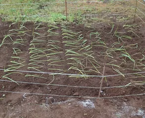 JAに注文していたたまねぎ苗が届いたので、雨前にと定植。がその場所はトラクターが入らない雑草いっぱい。まず草取りをガシガシした後なんとくわとみつまた😭で耕しました。スマート農業が進められている今、くわで耕すのはめちゃくちゃ大変でした。ついでに周りまで草切りまでしてかなりの時間がかかりましたが完成です