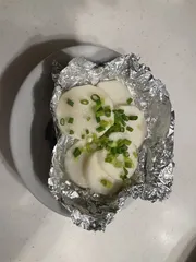 山芋と塩麹 【材料(分量付き)】山芋適量塩麹適量ネギ適量【作り方(使用した塩こうじパウダーの量とタイミング等、手順をわかりやすく)】1.山芋を1センチ程度の厚さにカット2.アルミホイルに適量の塩麹パウダーを振りかける。3.山芋をアルミホイルに載せる。4.再度塩麹パウダーを山芋の上に振りかける。5.アルミホイルで