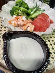 塩こうじ豆腐ソース 【材料】絹豆腐 200g塩麹パウダー 1袋オリーブオイル 大さじ3レモン搾り汁 大さじ2すりごま 大さじ2はちみつ 大さじ2 【作り方】①豆腐はレンジにかけてキッチンペーパーなどで拭き取り水切りする②材料全部をミキサーに入れてなめらかにしたら出来上がり 季節のお野菜 お肉 魚介類