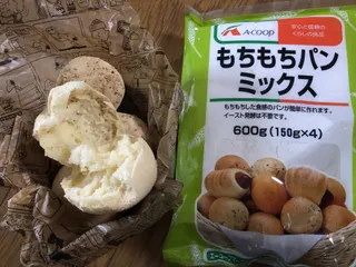 パン作りました いつかいつかと思っていたもちもちパンミックスを使ったパン作りやっと出来ました! 混ぜるだけ、こねるだけ、丸めるだけ焼くだけ、で出来ました✨ サラダ油大さじ3を米油大さじ3でやってみました卵と米油と水、ミックス粉を混ぜてこれは約2分こねてる所初めてなので書いてあるレシピ通りに5等分