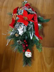 スワッグを作って来ました🤩 先生に来てもらって 数名で昼日中😂(スミマセン😅ちょっと1時間…) 「私 ちょっと〜来られんよ〜」と言いながら つい行ってしまった😅 でも とても 楽しめる時間でした😄 早速 夫に見せて報告❤️ こちらは 先生の作品😍 やっぱり違うなぁ💓 悪い事が家に入ってこないように 玄関先に飾るそうで